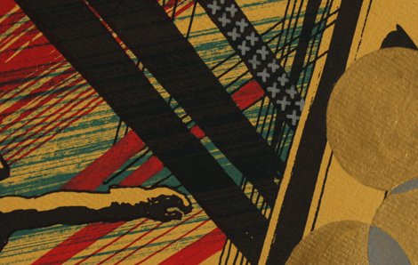 atelier "at home" qui se poursuit... un "recouvrement" en cours et en peinture d'une sérigraphie publicitaire offerte par un ami à une braderie lyonnaise